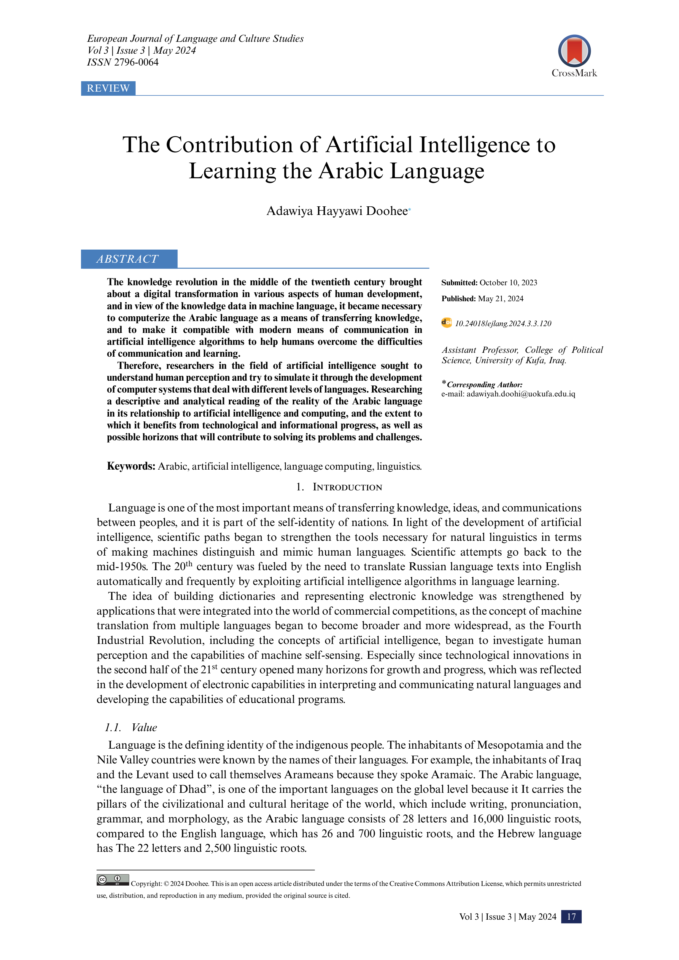 Diduh, O. (2009). The effectiveness of Arabic computational linguistics. Al-Athar Magazine, 8, 90–91.